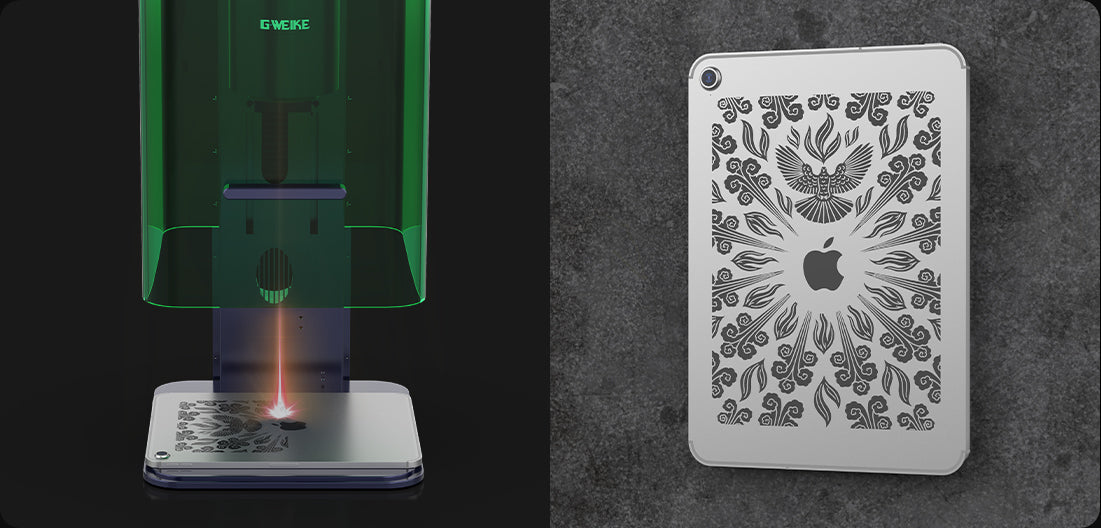Superior 3D Embossing, Faster Speed At 100% power, GWEIKE G3's 60W MOPA outperforms 20W fiber lasers — delivering 3x faster speed and 200% finer details