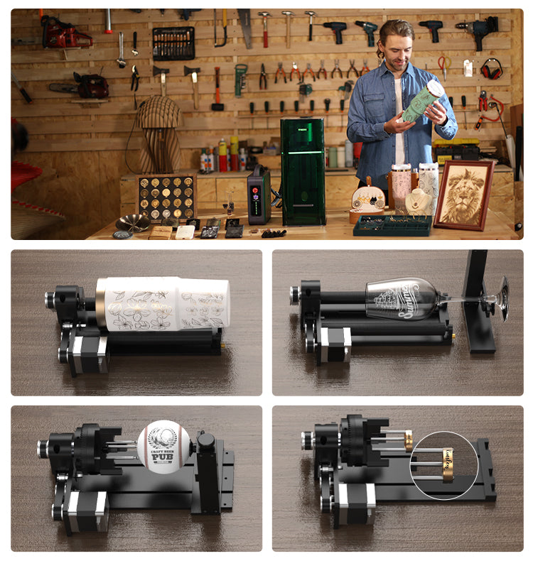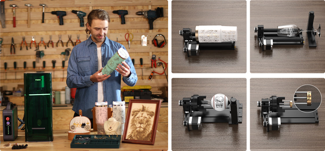 Ultimate versatility for engraving cylindrical, curved, and flat surfaces