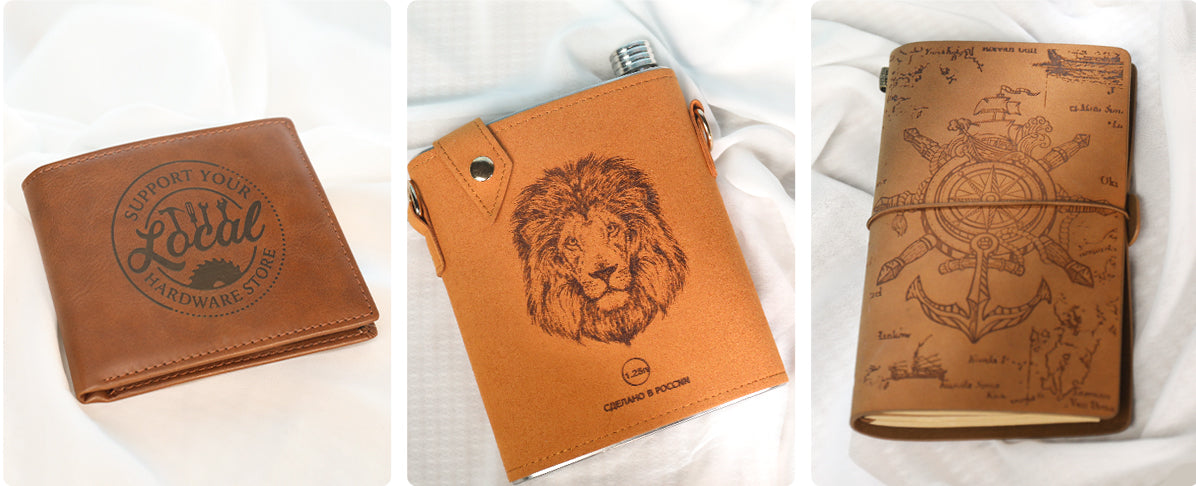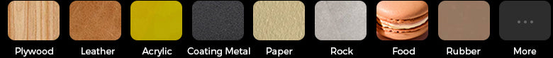 Diode Laser: Paper, Wood, Leather, MDF, Stainless steel, Some dark opaque acrylic, Bamboo, Fabric, Dark glass and More