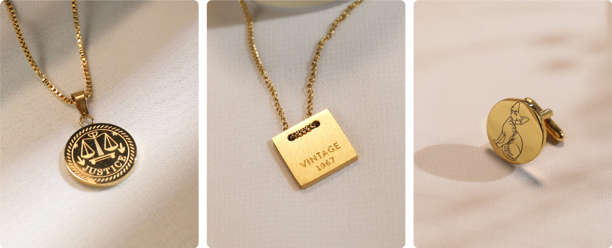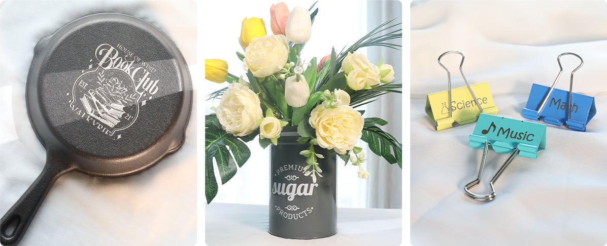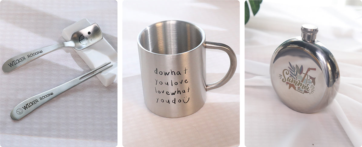 The fiber laser artfully engraves on stainless steel, aluminum, alloy, gold, silver, brass, plastic, leather, rubber & more.