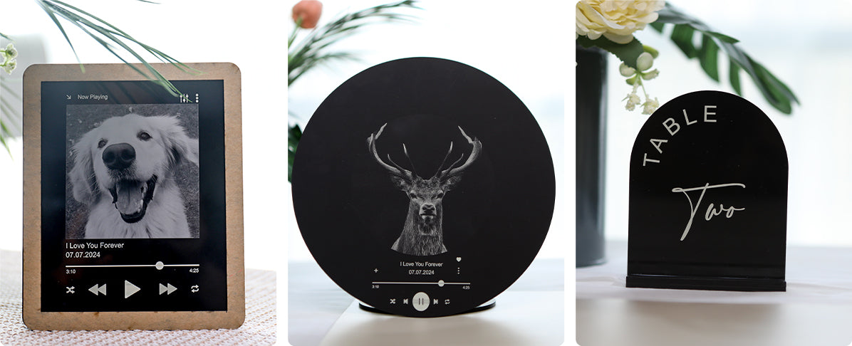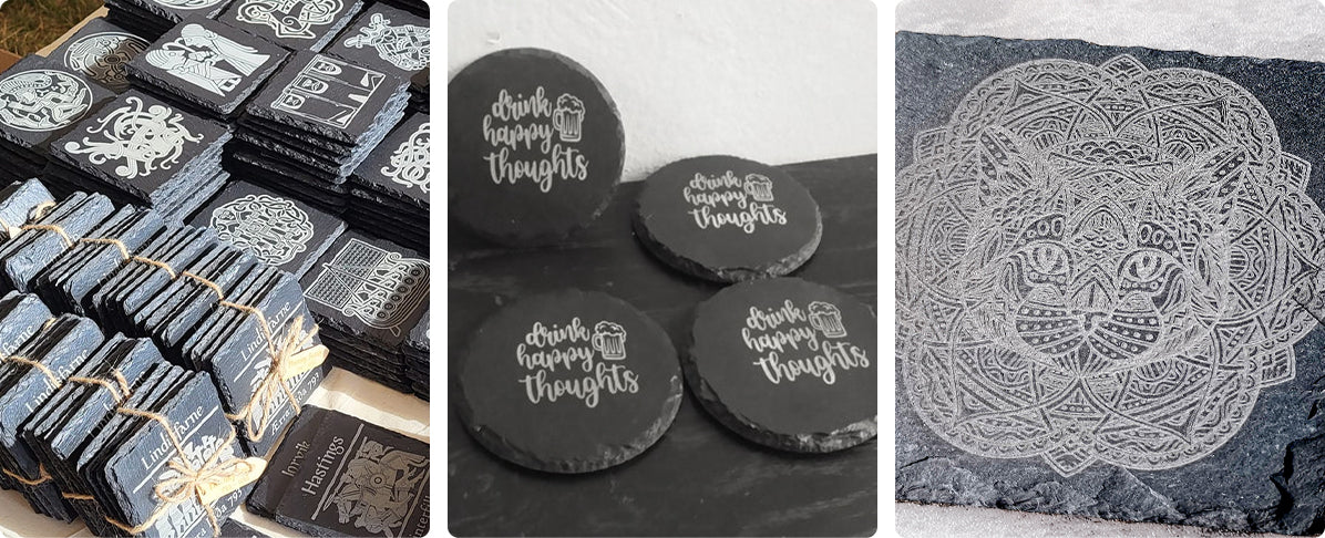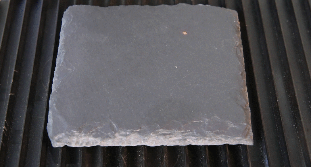 The fiber laser delivers crisp, deep engravings on slate, perfect for coasters, plaques, and art pieces.