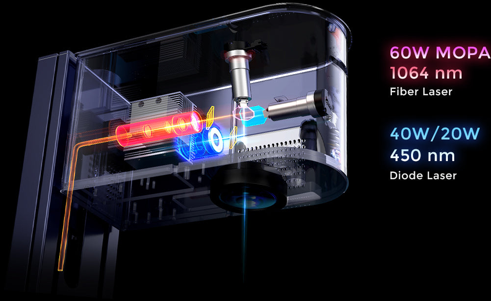 60W MOPA 1064nm Fiber laser + 40W 450nm Diode laser