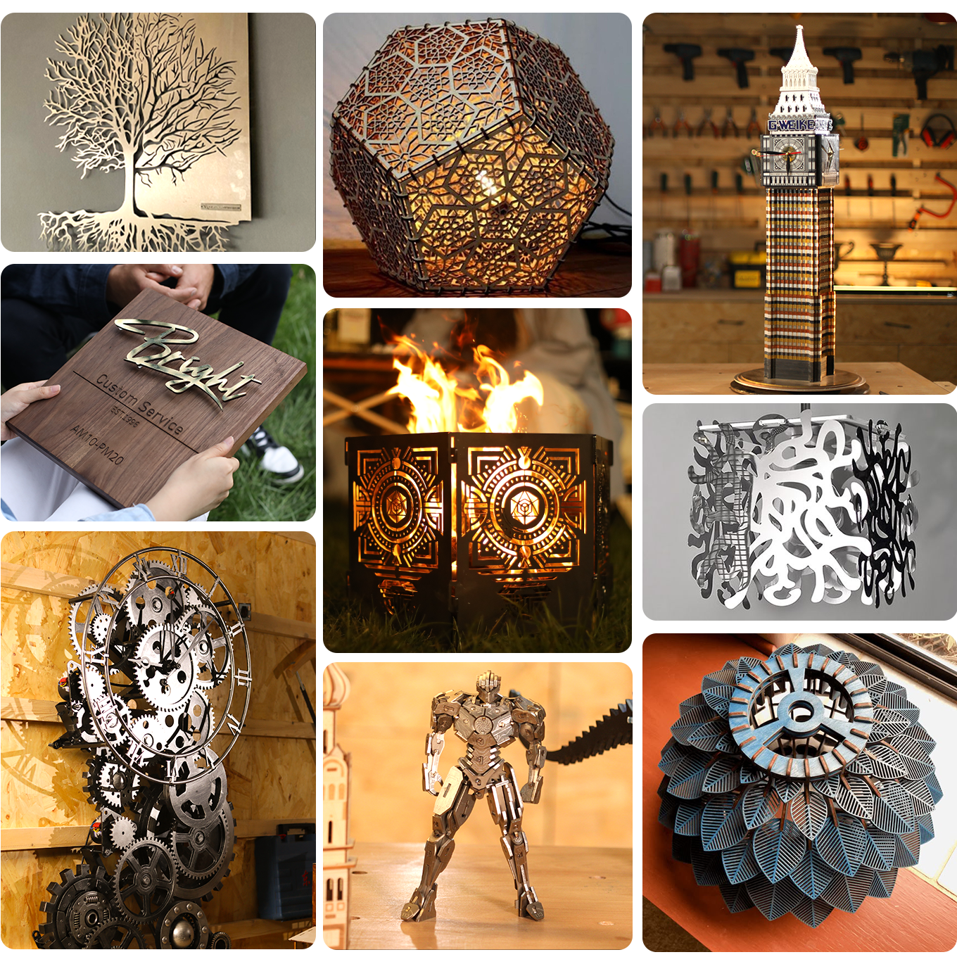 Traditional tools such as saws and carving knives are difficult to operate with low precision. In contrast, this all-in-one machine offers high-precision laser cutting (±0.01mm) and engraving capabilities, supporting intricate graphic designs and reducing the need for manual polishing.