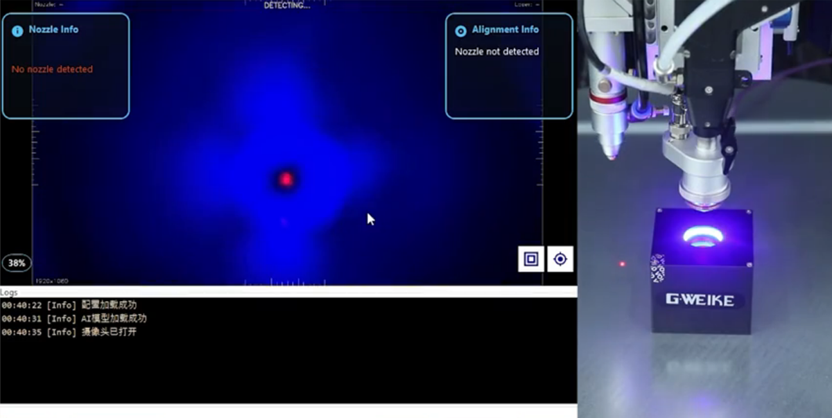 Place the module approximately 10 mm below the nozzle and start alignment with one click by turning on the camera. No need for repeated test plate cutting or enlarged slit observation, significantly reducing debugging cycle.
