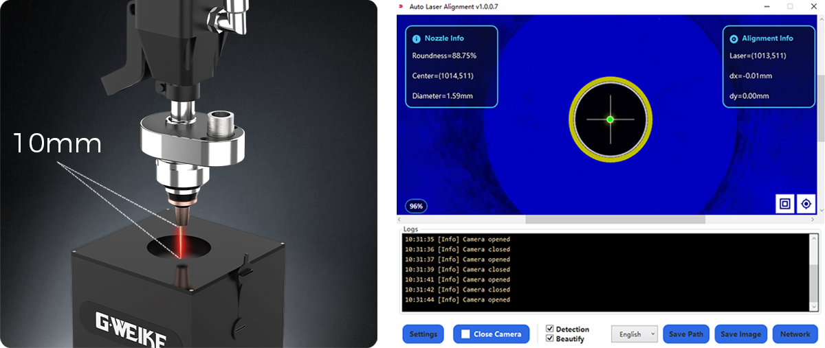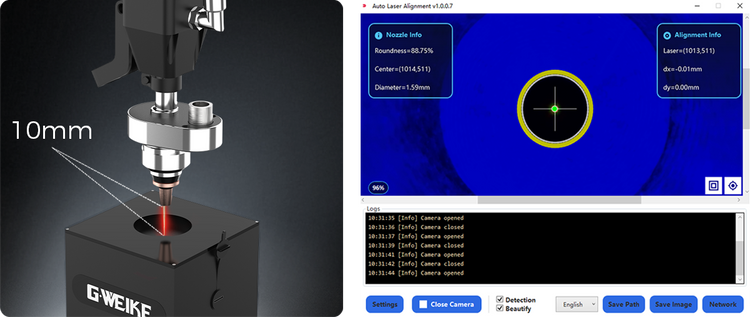 The system automatically calculates and displays the coordinates of the nozzle center, laser center, and precise deviation value. It converts "coaxiality" into quantifiable numbers, enabling accurate adjustments below the millimeter level.