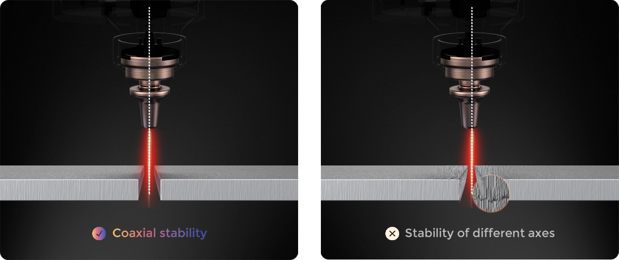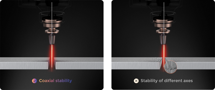 When the coaxiality between the laser and nozzle is stable, airflow and energy concentrate on the slit centerline. This effectively reduces dross and offset cutting, improves cutting section quality, and lowers scrap rate.